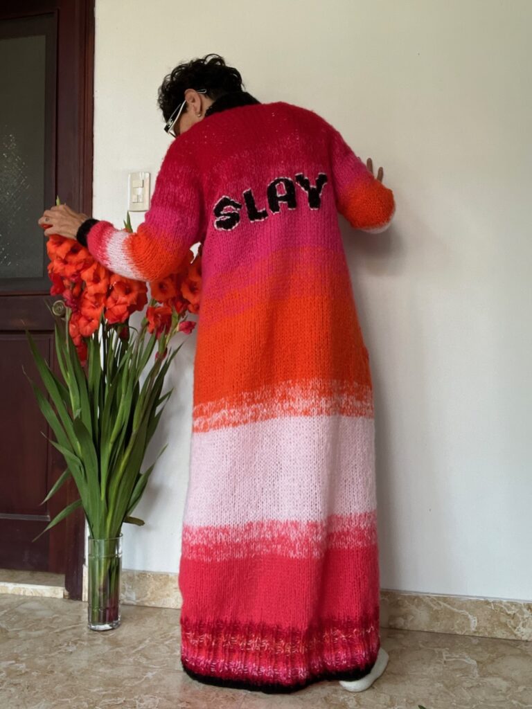 Mislim da moj umetnički jezik prirodno sadrži određeni nivo provokacije. Tekstil je veoma poznat materijal — okruženi smo njime i nosimo ga gotovo 24 sata dnevno. Upravo zbog te bliskosti postaje snažan medij za kontrast. Kada izvezem eksploziju, filcani AK-47 ili izvezem jednostavne reči na mekani džemper od mohera, poruka postaje jača. Mekоća i intimnost materijala ulaze u tenziju sa tvrđim ili provokativnijim motivima.